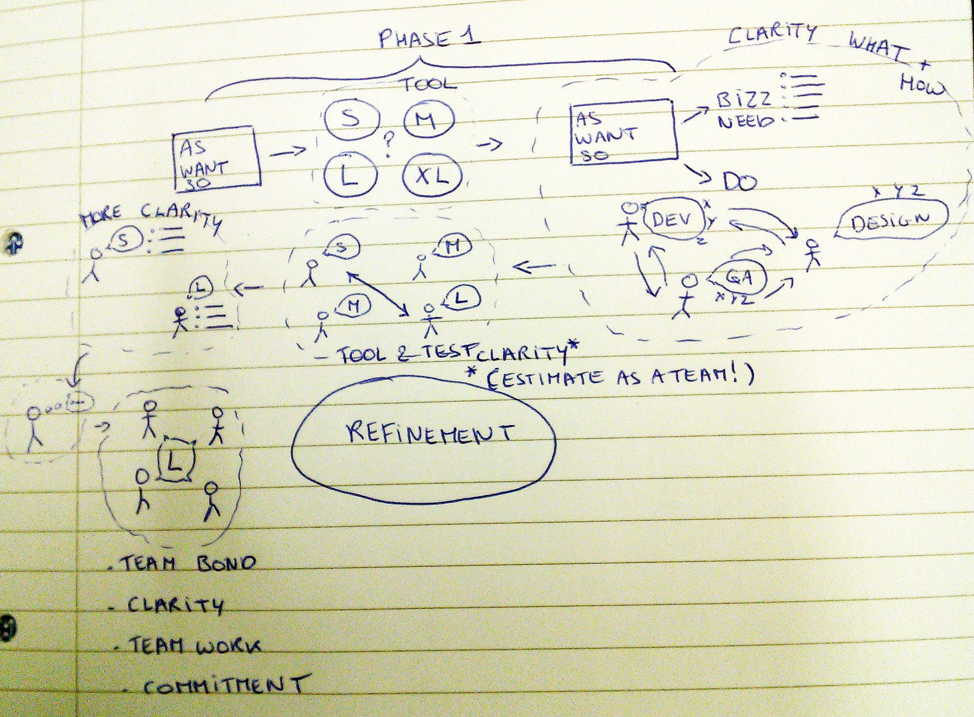 Take a look at this MVP drawing I did on the train this morning, this is the visual representation of my refinement ( phase 1 = week 1) – the second refinement is slightly different, but more on that later.